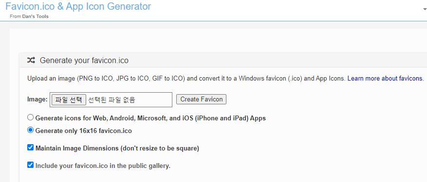 파비콘 제작은 어렵지 않습니다! 준비된 이미지만 있다면, 다음 무료 사이트들을 이용하여 간편하게 ICO 형식의 파비콘 파일을 만들 수 있습니다.